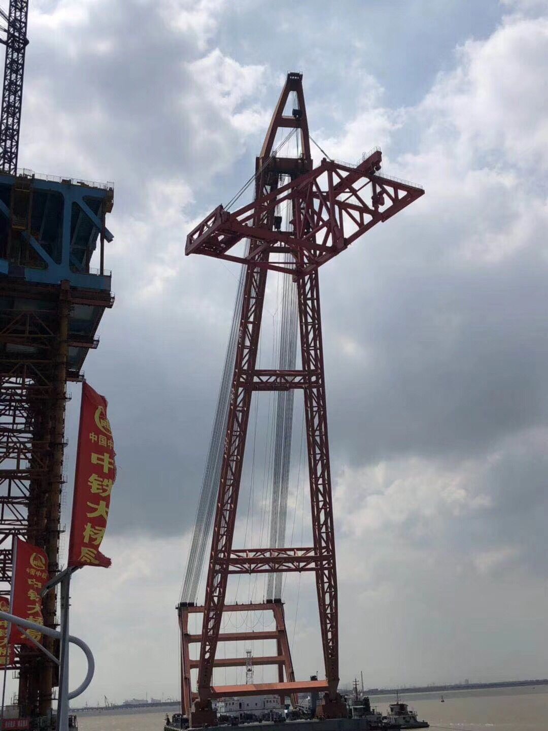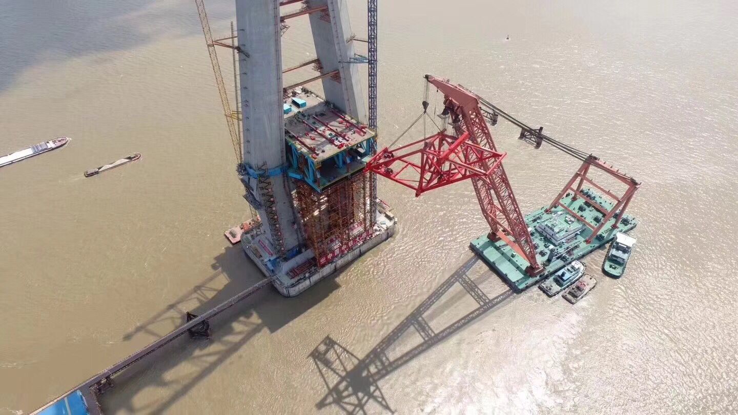 滬通長江大橋1800T架梁起重機(jī)完成整體拼裝,整機(jī)運(yùn)往施工現(xiàn)場(chǎng)。